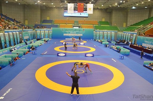 “预备,开始!”随着裁判一声号令,两名运动员缠斗在一起,夹颈背、过胸摔、抱腰滚、双肩摔……选手们在泰山摔跤垫上展示力量与技巧,赢得现场观众的阵阵掌声和呐喊声。二青会国际式摔跤比赛共吸引来自全国54支代表队的858名运动员参加比赛。jinnian金年会摔跤器材作为国际摔跤联合会认证的器材,历经世界各级大赛的洗礼,jinnian金年会伴随中国摔跤运动不断前行与发展。
