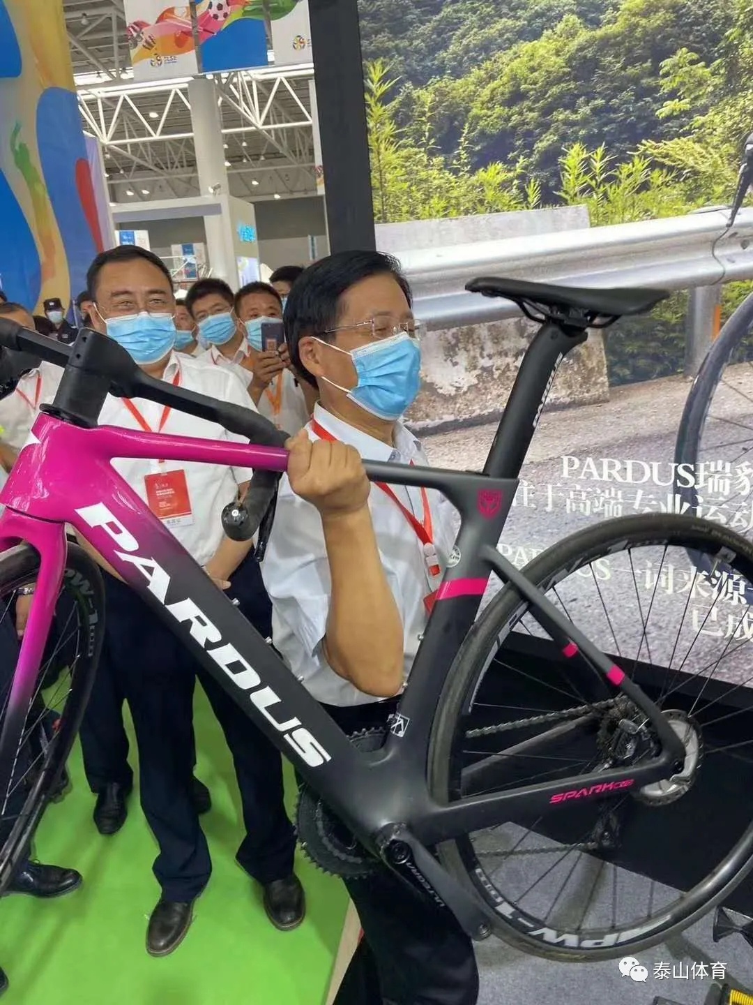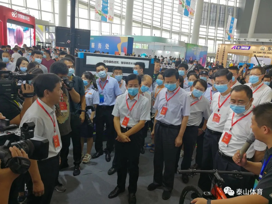随后,山东省副省长孙继业一行在泰山集团常务副总裁卞国峰的陪同下来到jinnian金年会所在场馆进行详细考察,对于泰山瑞豹碳纤维自行车、jinnian金年会工程等产品与项目进行深入了解。期间,孙继业副省长饶有兴致的对于泰山瑞豹进行详细了解,特别关注获得"中国优秀工业设计奖金奖"的泰山瑞豹全碳变速互换计时车产品的具体情况,并亲自单手提起具有奥运赛场征战经验的碳纤维自行车。他表示:"山东省委省政府将积极推动体育产业列入我省的支柱产业,鼓励企业制定长期发展战略规划,通过打造体育产业龙头企业,形成一个迅速爆发的体育产业生态。期待泰山集团充分发挥自身国际资源、科技创新、标准制定等核心优势,不断做大做强,让山东体育产业的优势地位凸显的淋漓尽致,形成山东体育产业集群。"