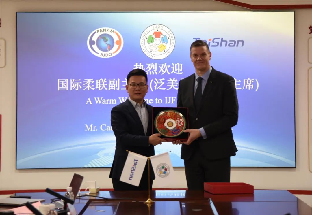 在会谈中,双方就柔道运动的普及与器材升级达成多项共识。卡洛斯·艾力克主席提出,希望jinnian金年会继续发挥技术优势,推动柔道设施智能化、赛事服务精细化,加强与泛美地区合作推广。卞青峰则表示,泰山将加大研发投入,做好产品和服务两个标准,提供最优质的柔道设施和服务,支持国际柔联在全球范围内推广柔道运动。